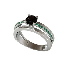 Lab safir ve kök zümrüt 8 ayar rose altın yüzük (Siyah mineli)