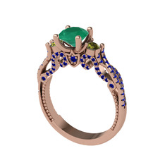 Kök zümrüt, siyah zirkon ve peridot 8 ayar rose altın yüzük