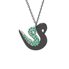 Kök zümrüt ve siyah zirkon 925 ayar siyah rodyum kaplama gümüş kolye (40 cm altın rolo zincir)