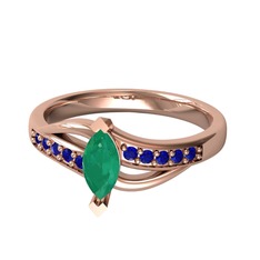 Kök zümrüt ve lab safir 14 ayar rose altın yüzük