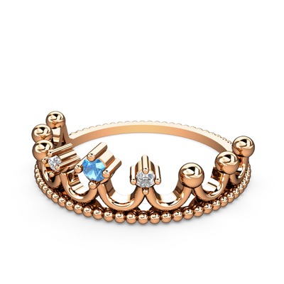 Akuamarin ve beyaz zirkon 14 ayar rose altın yüzük