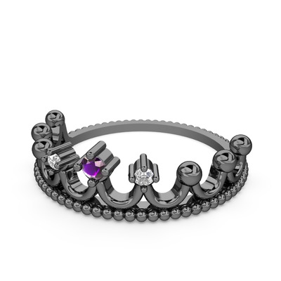 Ametist ve beyaz zirkon 925 ayar siyah rodyum kaplama gümüş yüzük
