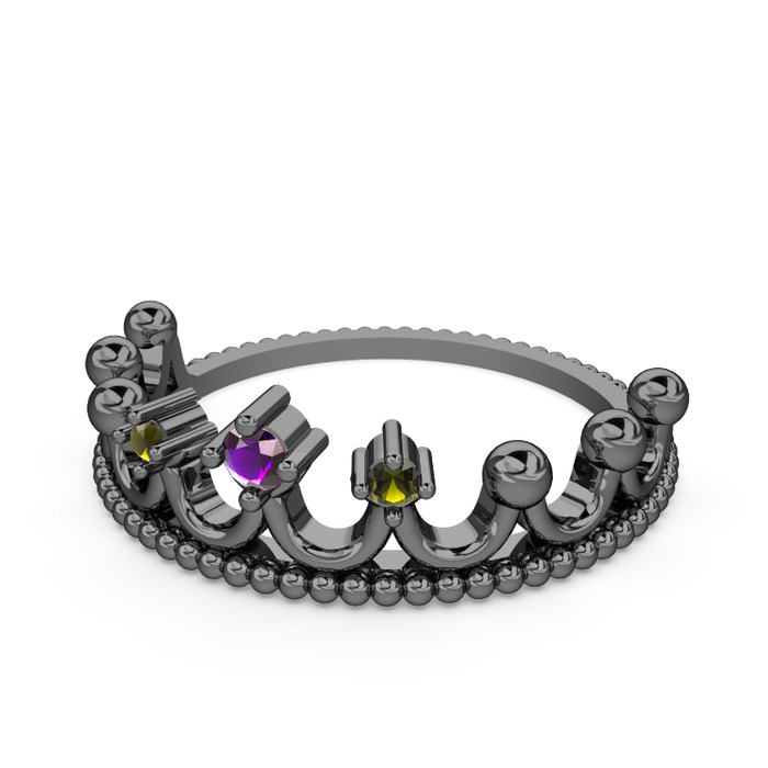Ametist ve peridot 925 ayar siyah rodyum kaplama gümüş yüzük