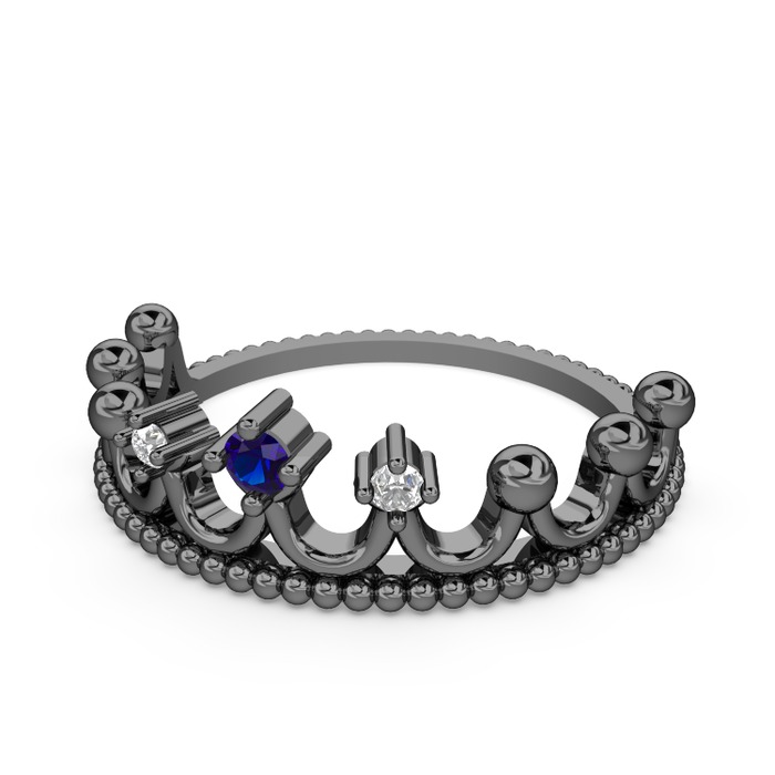 Lab safir ve pırlanta 925 ayar siyah rodyum kaplama gümüş yüzük (0.03 karat)