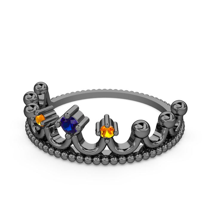 Lab safir ve sitrin 925 ayar siyah rodyum kaplama gümüş yüzük