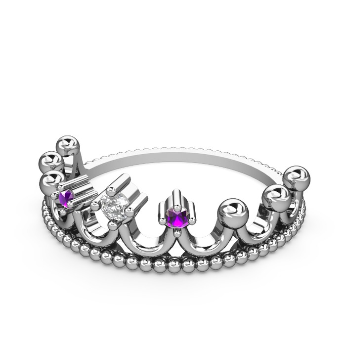 Pırlanta ve ametist 18 ayar beyaz altın yüzük (0.036 karat)