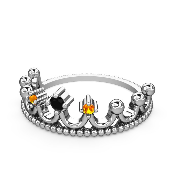 Siyah zirkon ve sitrin 18 ayar beyaz altın yüzük