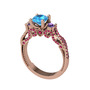 Akuamarin, ametist ve rodolit garnet 14 ayar rose altın yüzük