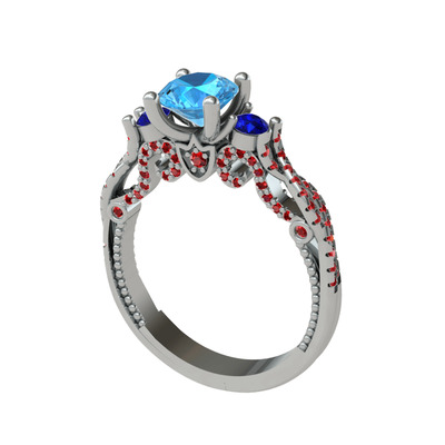 Akuamarin, lab safir ve garnet 8 ayar beyaz altın yüzük