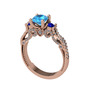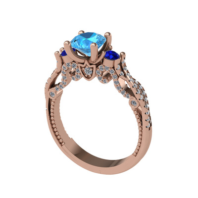 Akuamarin, lab safir ve pırlanta 925 ayar rose altın kaplama gümüş yüzük (0.792 karat)