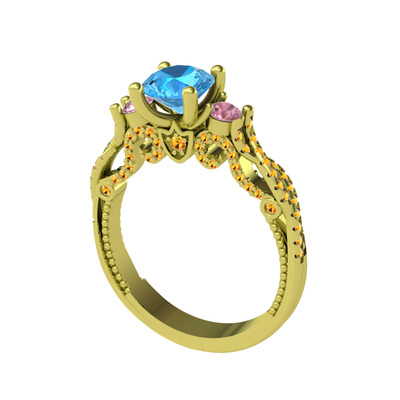 Akuamarin, pembe kuvars ve sitrin 14 ayar altın yüzük