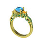 Akuamarin, sitrin ve yeşil kuvars 14 ayar altın yüzük