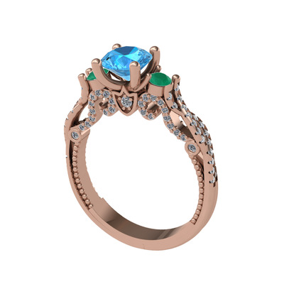 Akuamarin, yeşil kuvars ve pırlanta 925 ayar rose altın kaplama gümüş yüzük (0.792 karat)