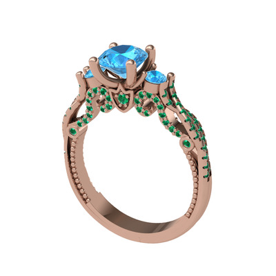 Akuamarin ve yeşil kuvars 925 ayar rose altın kaplama gümüş yüzük
