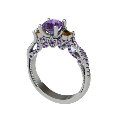Ametist ve dumanlı kuvars 18 ayar beyaz altın yüzük