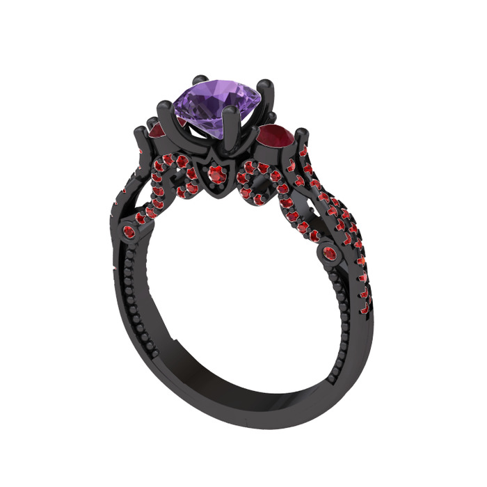 Ametist, kök yakut ve garnet 925 ayar siyah rodyum kaplama gümüş yüzük