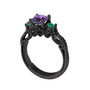 Ametist, kök zümrüt ve siyah zirkon 925 ayar siyah rodyum kaplama gümüş yüzük