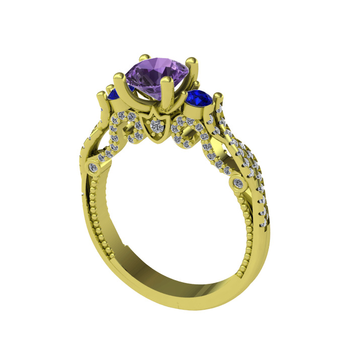 Ametist, lab safir ve pırlanta 18 ayar altın yüzük (0.792 karat)