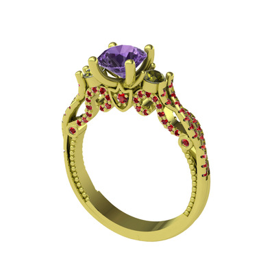 Ametist, peridot ve garnet 18 ayar altın yüzük