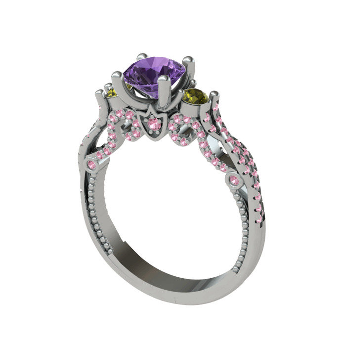 Ametist, peridot ve pembe kuvars 925 ayar gümüş yüzük