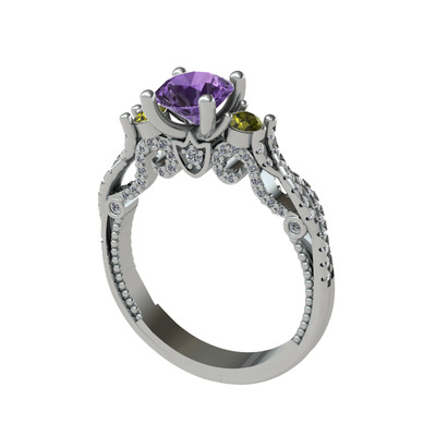 Ametist, peridot ve pırlanta 14 ayar beyaz altın yüzük (0.792 karat)