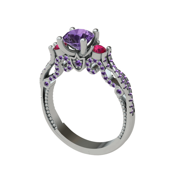 Ametist ve rodolit garnet 925 ayar gümüş yüzük