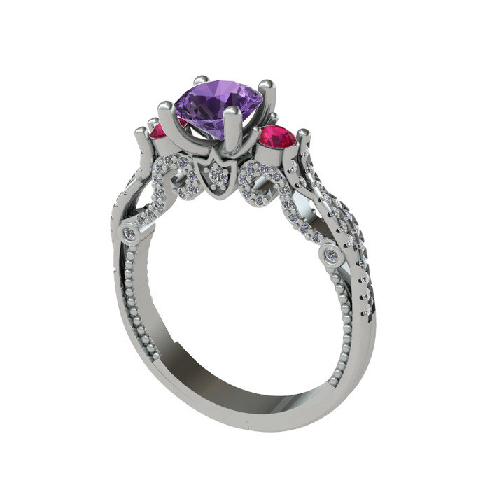 Ametist, rodolit garnet ve swarovski 14 ayar beyaz altın yüzük