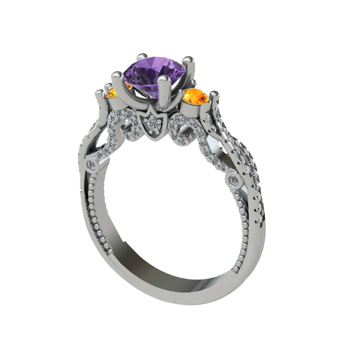 Ametist, sitrin ve pırlanta 925 ayar gümüş yüzük (0.792 karat)