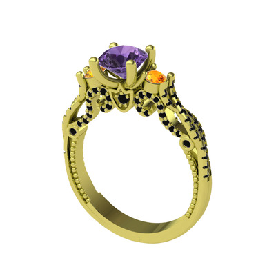 Ametist, sitrin ve siyah zirkon 8 ayar altın yüzük