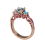 Beyaz zirkon, akuamarin ve rodolit garnet 14 ayar rose altın yüzük