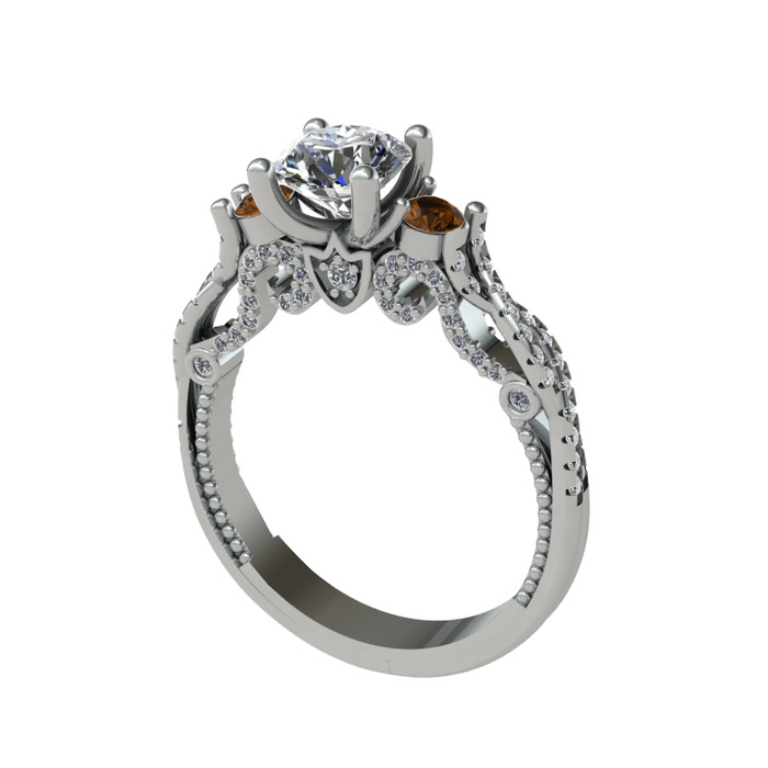 Beyaz zirkon, dumanlı kuvars ve pırlanta 8 ayar beyaz altın yüzük (0.792 karat)