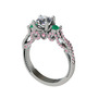Beyaz zirkon, kök zümrüt ve pembe kuvars 14 ayar beyaz altın yüzük