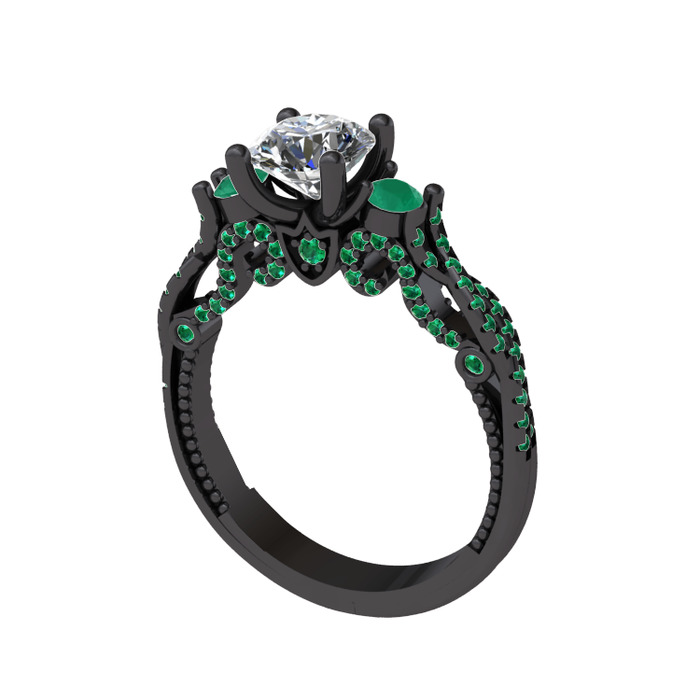 Beyaz zirkon, kök zümrüt ve yeşil kuvars 925 ayar siyah rodyum kaplama gümüş yüzük