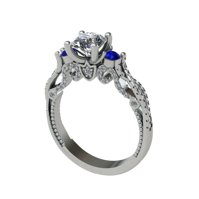 Beyaz zirkon, lab safir ve swarovski 14 ayar beyaz altın yüzük
