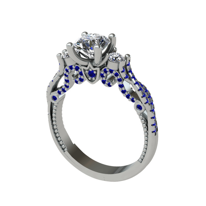 Beyaz zirkon, pırlanta ve lab safir 14 ayar beyaz altın yüzük (0.22 karat)