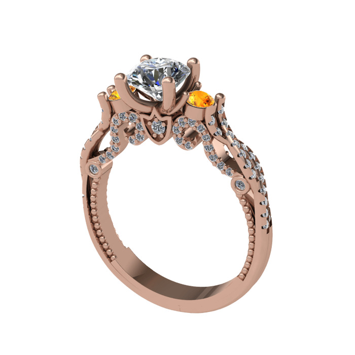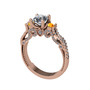 Beyaz zirkon, sitrin ve pırlanta 14 ayar rose altın yüzük (0.792 karat)