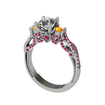 Beyaz zirkon, sitrin ve rodolit garnet 925 ayar gümüş yüzük