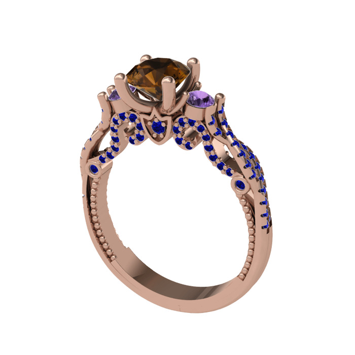 Dumanlı kuvars, ametist ve lab safir 18 ayar rose altın yüzük