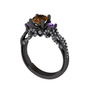 Dumanlı kuvars, ametist ve pırlanta 925 ayar siyah rodyum kaplama gümüş yüzük (0.792 karat)
