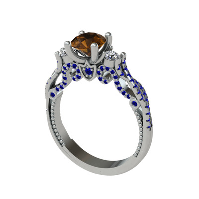 Dumanlı kuvars, beyaz zirkon ve lab safir 8 ayar beyaz altın yüzük