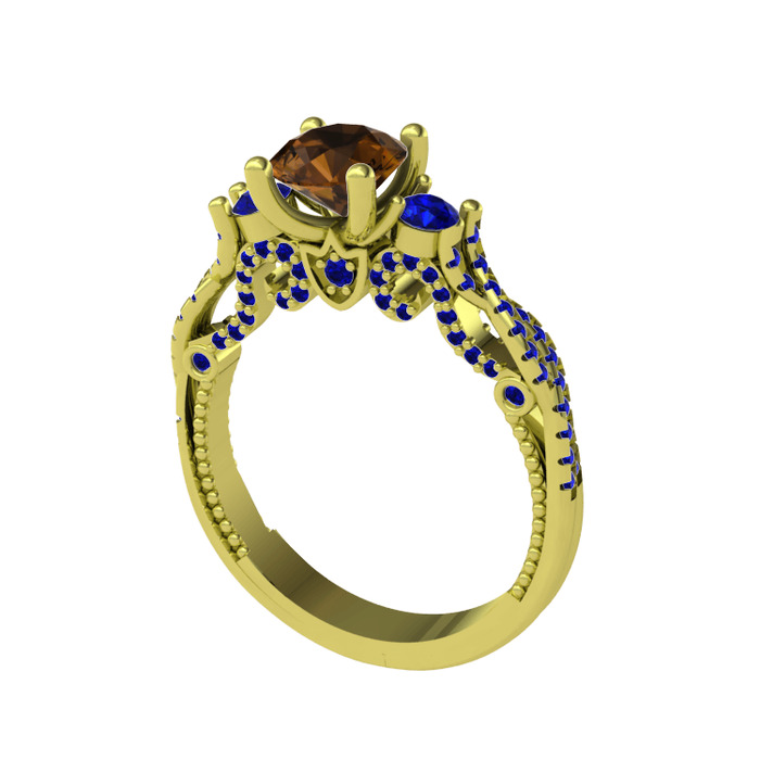 Dumanlı kuvars ve lab safir 18 ayar altın yüzük
