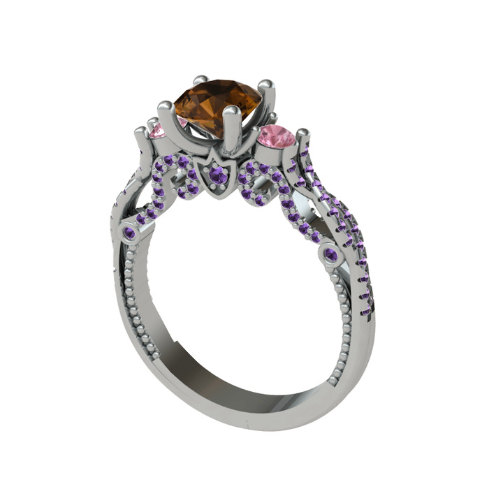 Dumanlı kuvars, pembe kuvars ve ametist 925 ayar gümüş yüzük