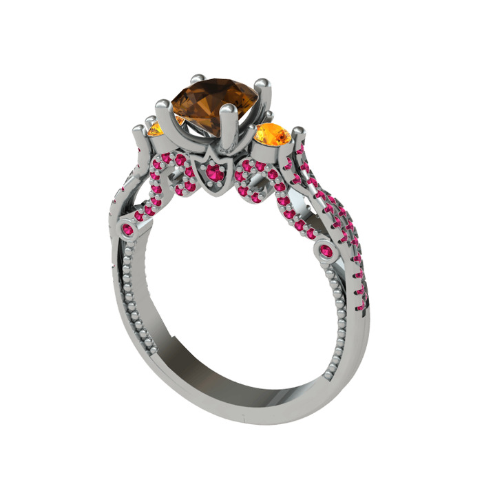 Dumanlı kuvars, sitrin ve rodolit garnet 925 ayar gümüş yüzük