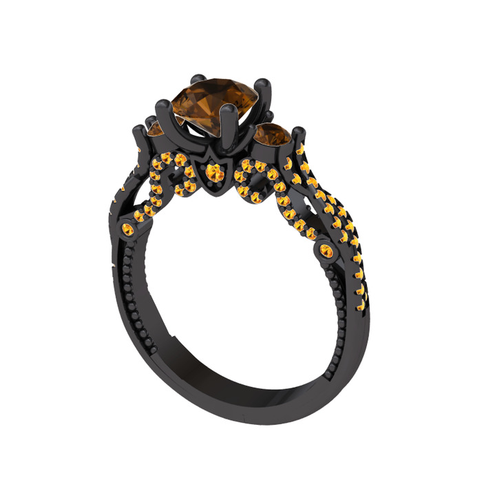 Dumanlı kuvars ve sitrin 925 ayar siyah rodyum kaplama gümüş yüzük