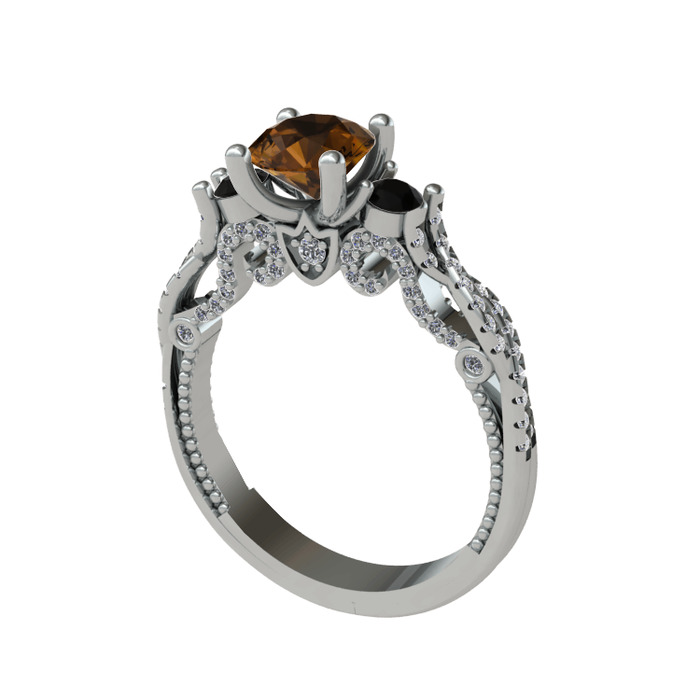 Dumanlı kuvars, siyah zirkon ve beyaz zirkon 14 ayar beyaz altın yüzük