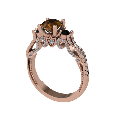 Dumanlı kuvars, siyah zirkon ve pırlanta 925 ayar rose altın kaplama gümüş yüzük (0.792 karat)