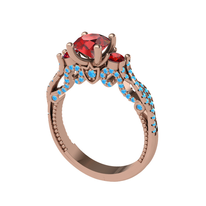 Garnet ve akuamarin 8 ayar rose altın yüzük
