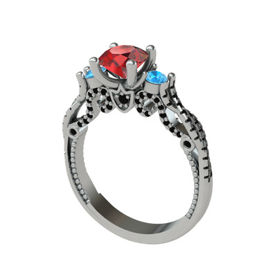 Garnet, akuamarin ve siyah zirkon 925 ayar gümüş yüzük