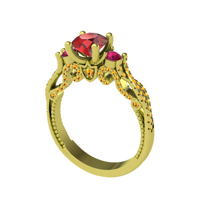 Garnet, rodolit garnet ve sitrin 18 ayar altın yüzük