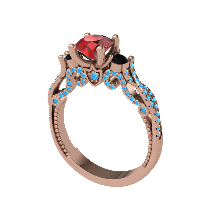 Garnet, siyah zirkon ve akuamarin 925 ayar rose altın kaplama gümüş yüzük